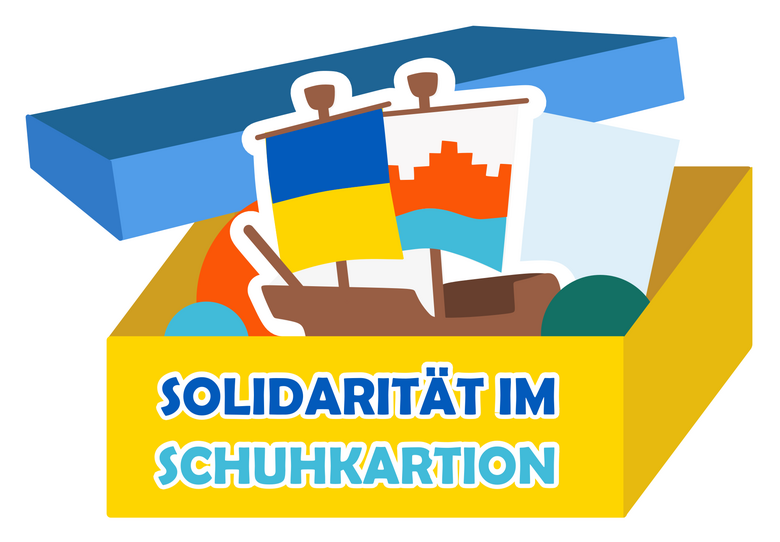 Wir packen Schuhkartons mit Willkommensgeschenken für ukrainische Geflüchtete in der Region und bauen Patenschaften auf.